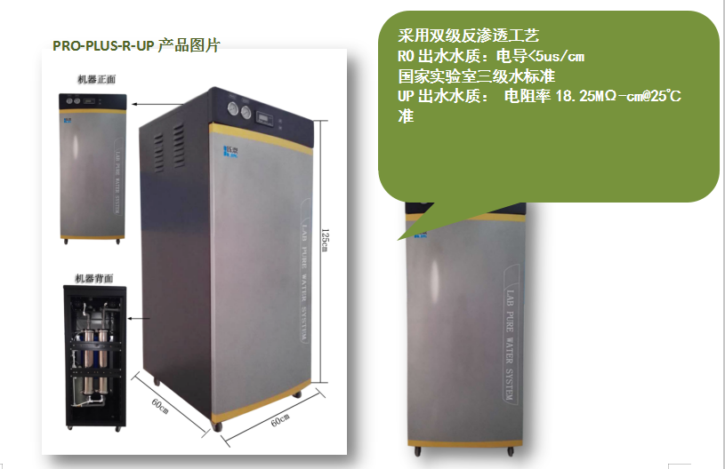 PRO-PLUS-R-UP系列雙極反滲透超純水機(jī),產(chǎn)量90L/H可選。達(dá)到實(shí)驗(yàn)室一級水標(biāo)準(zhǔn)和實(shí)驗(yàn)室三級水標(biāo)準(zhǔn)滿足不同實(shí)驗(yàn)要求。