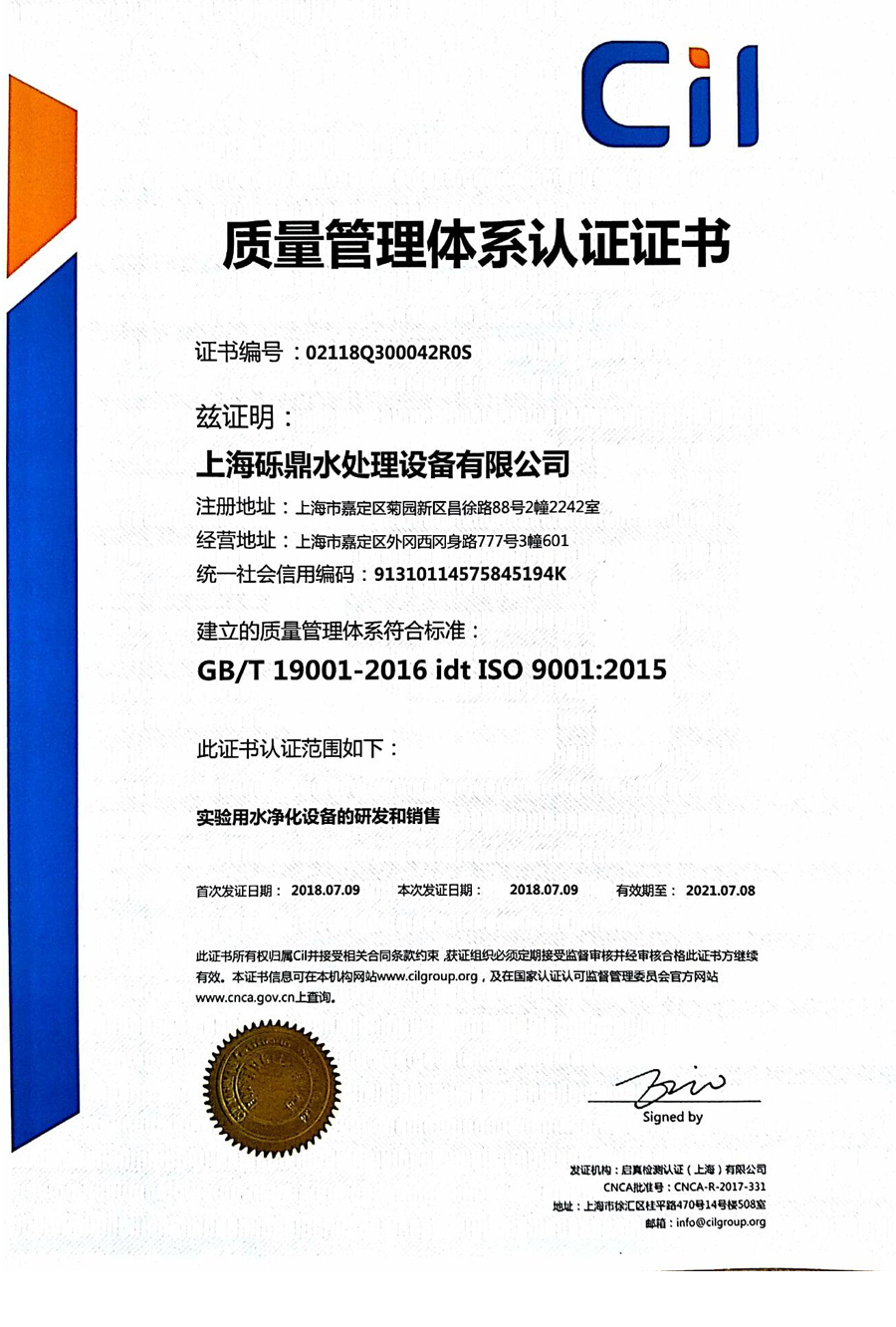 質(zhì)量管理體系認(rèn)證證書